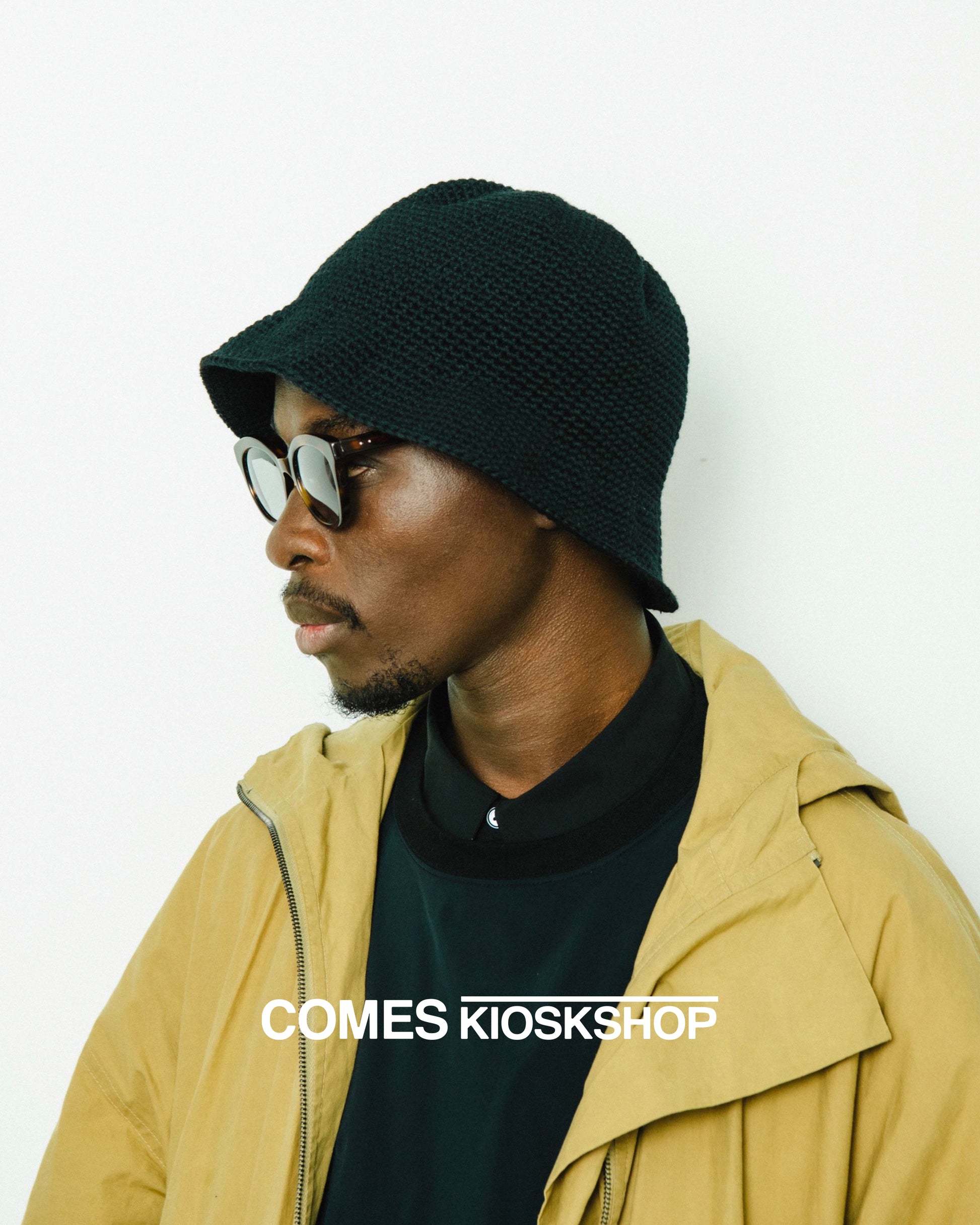 手編み=ほっこりにならないように繊細で美しい仕上がりに気を配り、モード寄りの良い面構えのニットハットを製作しました。